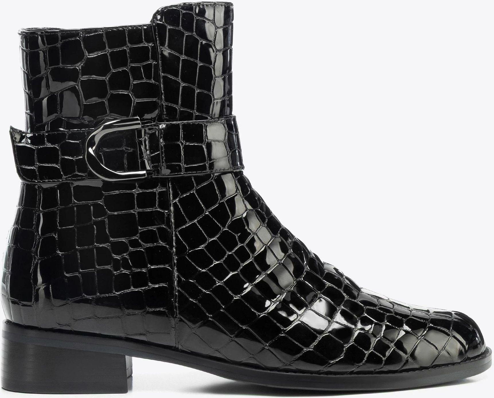 Damskie botki z lakierowanej skóry croco czarne Karczew