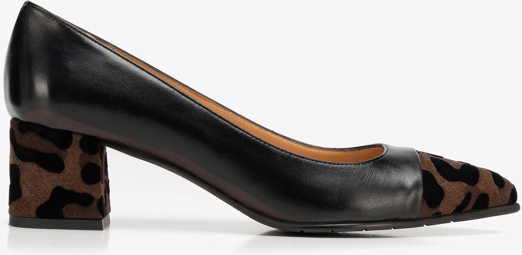 Damskie czółenka ze skóry naturalnej z obcasem w panterkę czarne Karczew
