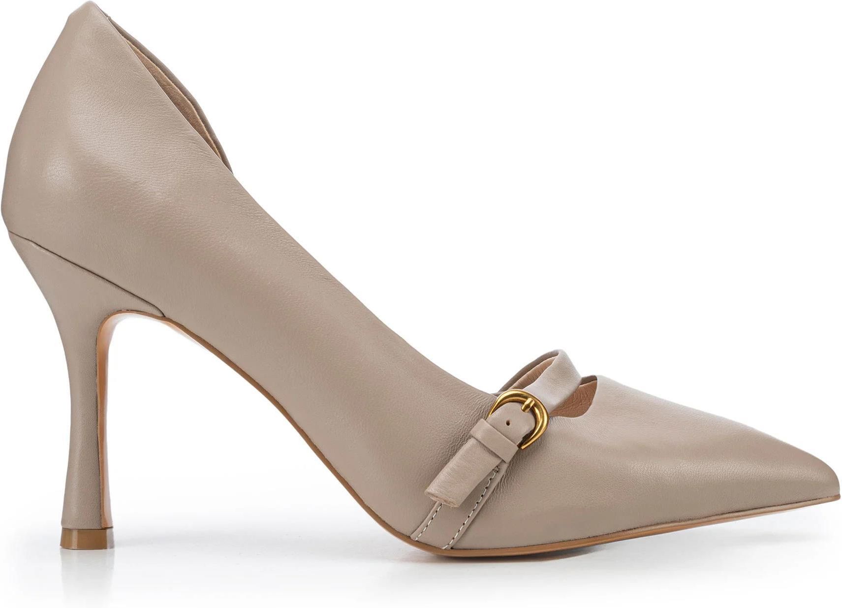 Damskie czółenka ze skóry z paskiem beżowe Karczew