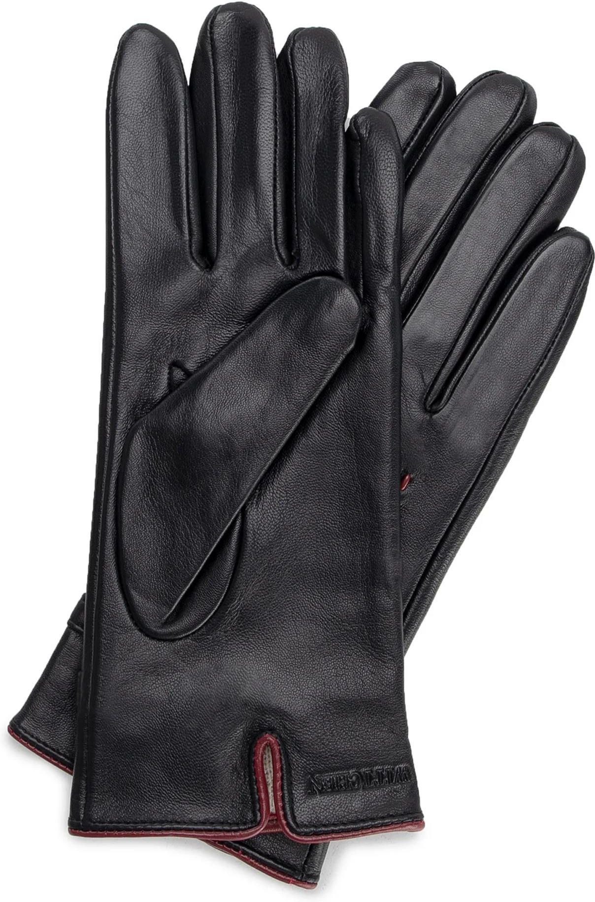 Damskie rękawiczki ze skóry ocieplane z wełną czarne Karczew