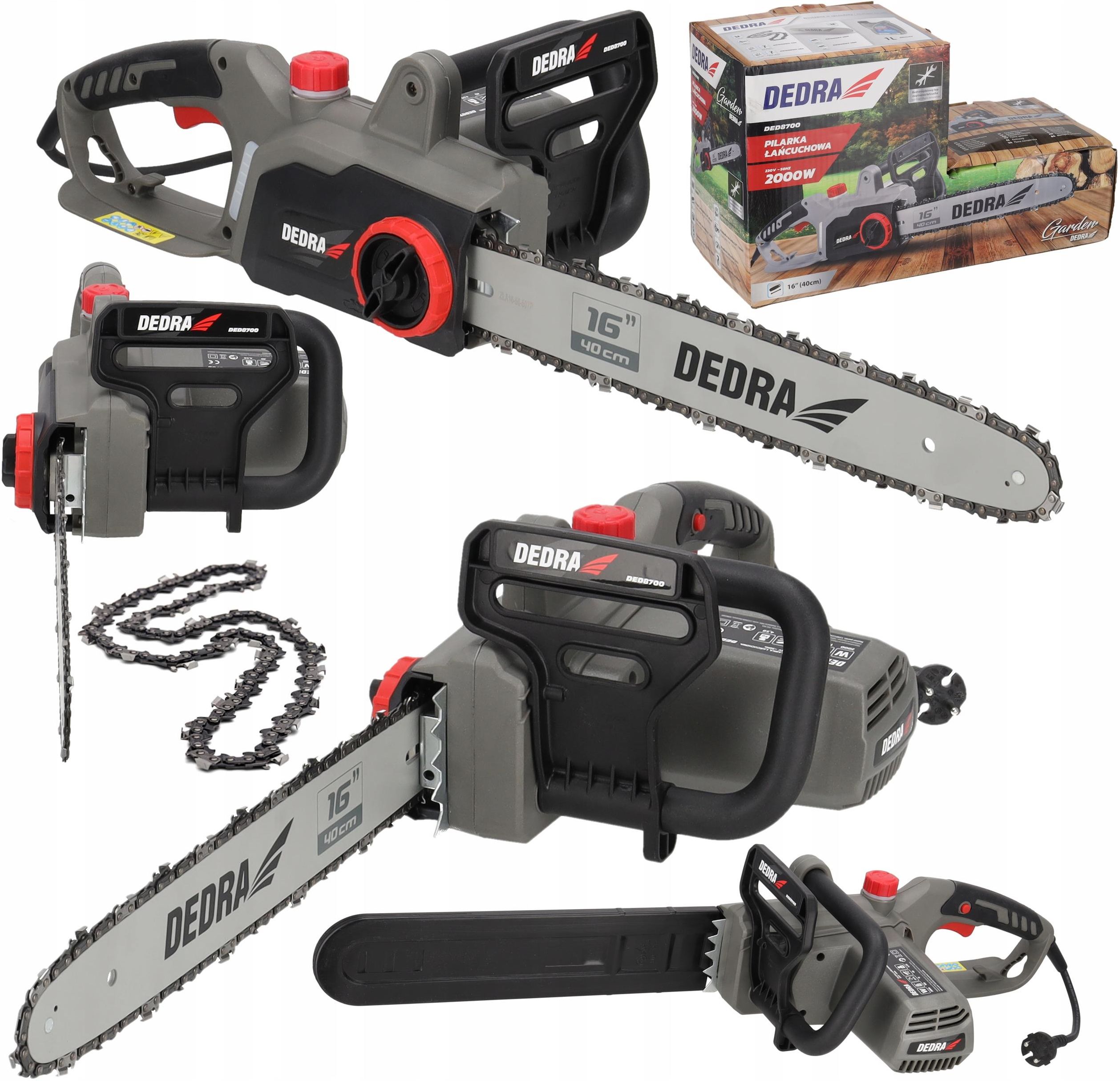 Piła łańcuchowa elektryczna DEDRA Moc silnika 2000 W Długość prowadnicy 40 cm (16") Serwis door to door System napinania łańcucha SDS DED8700 Cechy piły łańcuchowej Beznarzędziowy system napinania Automatyczne smarowanie łańcucha Hamulec bezpieczeństwa w razie podbicia Bezpieczny włącznik zapobiega przypadkowemu uruchomieniu Łańcuch o profilu półdłuta odporny na zabrudzenia Dane techniczne Moc: 2000 W Napięcie: 230 V~50 Hz Długość prowadnicy: 16ʺ (400 mm) Szerokość rowka prowadnicy: 1,3 mm Ilość zębów łańcucha: 57 sztuk Typ zęba: półdłuto Podziałka łańcucha: 3/8" Prędkość łańcucha: 15 m/s Pojemność zbiornika oleju: 150 ml Waga: 5,25 kg Wymiary opakowania: 45,5 x 27x 19,5 cm W zestawie Pilarka [1 szt] Prowadnica 16" [1 szt] Łańcuch [1 szt] Osłona prowadnicy [1 szt] Karta gwarancyjna - "door to door" Instrukcja obsługi w języku polskim Zastosowanie Elektryczna pilarka łańcuchowa DEDRA DED8700 to niezawodne narzędzie, które sprawdzi się w szerokim zakresie prac, takich jak przycinanie gałęzi, przygotowywanie drewna opałowego wykonywanie wymagających zadań ogrodowych i budowlanych. Dzięki swojej uniwersalnej konstrukcji, pilarka jest odpowiednia zarówno dla początkujących, jak i dla bardziej zaawansowanych użytkowników. Moc Charakteryzuje się silnikiem o mocy 2000 W, który gwarantuje efektywne i skuteczne cięcie drewna o różnej twardości, zapewniając jednocześnie stabilną pracę i optymalne zużycie energii. Trwałość i wydajność Automatyczny system smarowania łańcucha, który dostarcza olej na łańcuch i prowadnicę tym samym wpływa na zwiększenie ich żywotności, a także zapewnia płynniejsze cięcie. Prowadnica i łańcuch o profilu półdłuta Prowadnica o długości 16" (40cm) jest łatwiejsza w prowadzeniu i obsłudze. Sprawdza się do mniejszych drzew, prac w ogrodzie, pracach przydomowych i przygotowaniu opału. Dzięki łańcuchowi o profilu półdłuta, pilarka cechuje się dużą odpornością na zanieczyszczenia i wolniejszym tępieniem. Idealnie nadaje się do cięcia drewna miękkiego i średnio twardego, także tego zmieszanego z piaskiem czy błotem. Dodatkowe funkcje Pilarka wyposażona jest w system napinania łańcucha, który nie wymaga użycia narzędzi – umożliwia to szybkie i łatwe dostosowanie napięcia łańcucha oraz jego wymianę, co oszczędza czas i zwiększa efektywność pracy. Wygoda Elementy antypoślizgowe na rękojeści wpływają na zmniejszenie występowania uczucia zmęczenia rąk i poprawia precyzję cięcia, co przekłada się na lepszą kontrolę nad pilarką. Dodatkowo gumowany uchwyt minimalizuje drgania. Pilarka jest wyważona i wygodna do trzymania oraz łatwa do manewrowania. Ochrona Wskaźnik poziomu oleju pokazuje aktualny poziom oleju w zbiorniku, co pozwala na bieżąco kontrolować stan smarowania łańcucha. Chroni silnik przed uszkodzeniami spowodowanymi niewystarczającym smarowaniem, co wydłuża żywotność urządzenia. Wskaźnik ten ułatwia również komfortowe i bezproblemowe napełnianie zbiornika, co przekłada się na efektywność i bezpieczeństwo pracy. Duży wlew oleju ułatwi Ci napełnianie zbiornika. Bezpieczeństwo W trosce o bezpieczeństwo użytkownika, pilarka została wyposażona w hamulec bezpieczeństwa, który natychmiastowo zatrzymuje łańcuch w przypadku jego podbicia, chroniąc w ten sposób przed niebezpiecznymi urazami. Zastosowanie bezpiecznego włącznika zapobiega przypadkowemu uruchomieniu urządzenia, co jest kluczowe przy pracy z takimi narzędziami. Dostępność serwisu i części Produkt objęty jest 2 letnim okresem ochrony serwisowej. Nasi profesjonaliści posiadają niezbędne doświadczenie i wiedzę, aby skutecznie diagnozować i naprawiać usterki. Dane techniczne Moc: 2000 W Napięcie: 230 V~50 Hz Długość prowadnicy: 16ʺ (400 mm) Szerokość rowka prowadnicy: 1,3 mm Ilość zębów łańcucha: 57 sztuk Typ zęba: półdłuto Podziałka łańcucha: 3/8" Prędkość łańcucha: 15 m/s Pojemność zbiornika oleju: 150 ml Waga: 5,25 kg Wymiary opakowania: 45,5 x 27x 19,5 cm W zestawie: Pilarka [1 szt] Prowadnica 16" [1 szt] Łańcuch [1 szt] Osłona prowadnicy [1 szt] Karta gwarancyjna - "door to door" Instrukcja obsługi w języku polskim Jesteśmy firmą narzędziową działającą w branży od 1991r. Nasz katalog to bogata oferta elektronarzędzi, urządzeń akumulatorowych, akcesoriów do elektronarzędzi, narzędzi ogrodowych, urządzeń spawalniczych, narzędzi ręcznych, artykułów BHP. Nasze produkty sprzedajemy w Polsce i 14 krajach Europy. Nieprzerwanie od kilku dekad dbamy o wysoką jakość oferowanych produktów oraz usług a potrzeby klientów są naszym priorytetem. Hasło “Mocna Trwała Niezawodna” niezmiennie charakteryzuje markę Dedra.