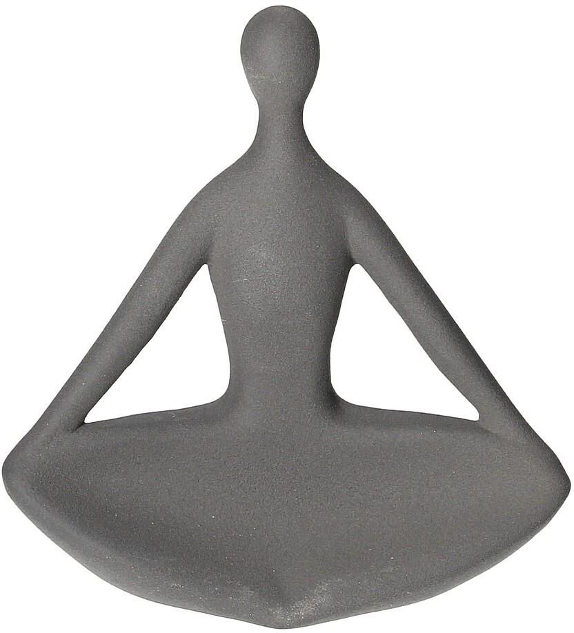 Figurka w kształcie kobiety praktykującej jogę. Figurka kobiety w pozycji medytacyjnej, wykonana z ceramiki, to subtelna ozdoba, która wprowadza do wnętrza harmonię i spokój. Jej delikatna forma doskonale komponuje się z przestrzeniami przeznaczonymi do relaksu. To jedna z trzech figurek w serii, które można łączyć, tworząc spójną i elegancką dekorację, pełną wyciszenia i estetyki. Wymiary: szer. 12 cm, dł. 6 cm, wys. 12 cm