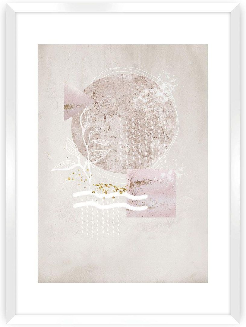 Plakat z graficzną ilustracją z abstrakcyjnymi kształtami w odcieniach beżu i różu. Plakat został oprawiony w białą, wbudowaną ramę z passe partout.Sztuka abstrakcyjna ma tą zaletę, że można ją interpretować w całkowicie dowolny sposób. Abstrakcyjne dzieła są nieodłącznym elementem stylowych aranżacji wnętrz.Grafika wydrukowana została na papierze satynowym bez połysku o gramaturze 200g. Plakat można kupić bez ramki, jednak dla uzyskania lepszego efektu dobierz pasującą ramkę. Pozwoli Ci to na stworzenie kompletnej galerii na ścianie. W naszej ofercie posiadamy ramki w kolorze: białym, czarnym, srebrnym i złotym.Ramki dostępne są w pięciu rozmiarach. Rozmiary 21x30cm, 30x40cm, 40x50cm wykonane są z tworzywa sztucznego. Rozmiary 50x70cm i 70x100cm wykonane są z aluminium.