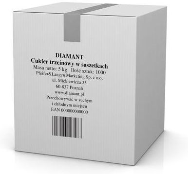 Opis szczegółowy Łatwo rozpuszczalny cukier biały o drobnych kryształkach. Pakowany w pojedyncze saszetki. Parametry produktu Rodzaj: Biały Stopień rozdrobnienia: Kryształki standard Zawartość netto: 5 kg Kraj pochodzenia/Wyprodukowano w: Polska Składniki: Sacharoza Kod CN: 1701 12 10 Waga jednostkowa brutto: 5,57 kg Liczba warstw na palecie: 7 warstw (warstwa) Wymiar opakowania (SxWxG): 24 x 25 x 30 cm Kraj pochodzenia głównego składnika: Polska Liczba opakowań pierwszego rzędu na warstwie palety: 9 op. zb. (DU) Liczba opakowań konsumenckich: 1 szt. Wysokość palety: 1,75 m Waga brutto: 5,57 kg Temperatura przechowywania min - max: 5 - 30 °C Liczba opakowań pierwszego rzędu na palecie: 63 op. zb. (DU) Alergeny Dwutlenek siarki i siarczyny: Nie Jaja i produkty pochodne: Nie Zboża zawierajace gluten: Nie Mleko i produkty pochodne (łącznie z laktozą): Nie Seler i produkty pochodne: Nie Nasiona sezamu i produkty pochodne: Nie Mięczaki i produkty pochodne: Nie Łubin i produkty pochodne: Nie Skorupiaki i produkty pochodne: Nie Orzechy: Nie Gorczyca i produkty pochodne: Nie Ryby i produkty pochodne: Nie Soja i produkty pochodne: Nie Przechowywanie Sposób przechowywania: przechowywać w temperaturze pokojowej Wartość odżywcza Wielkość porcji: 5 g Jednostka będąca podstawą przeliczeń: g/100 g Zawartość węglowodanów (cukry) w zadeklarowanej jednostce (g): 100 g Zawartość tłuszczów (ogólnie) w zadeklarowanej jednostce (g): 0 g Zawartość tłuszczów (kwasy tłuszczowe nasycone) w zadeklarowanej jednostce (g): 0 g Wartość energetyczna kcal (energia) w zadeklarowanej jednostce: 400 kcal/100g Zawartość soli (ogólnie) w zadeklarowanej jednostce (g lub ml): 0 g