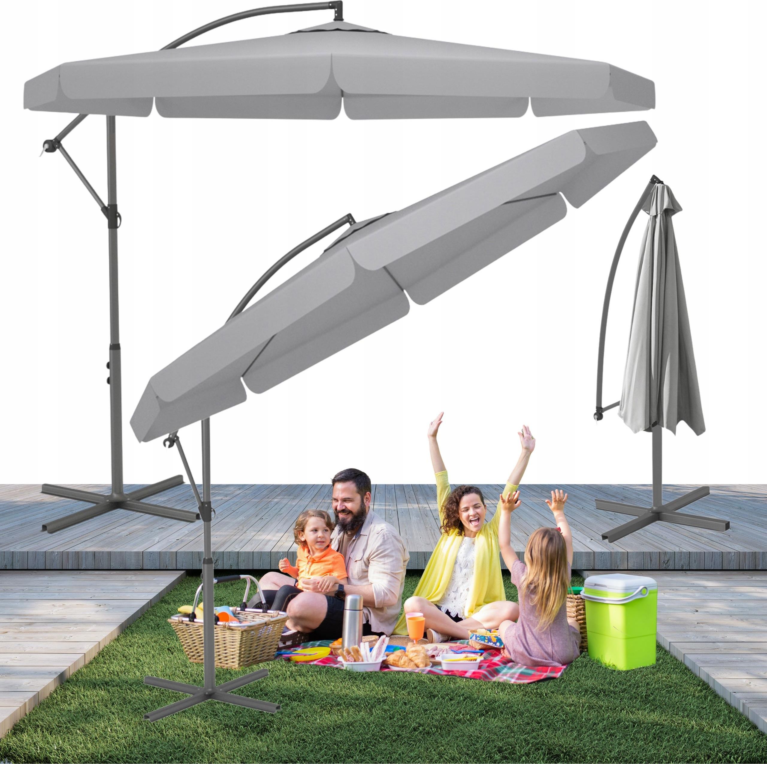 DUŻY PARASOL OGRODOWY SZARY 350X250 CM REGULOWANY SKŁADANY Z WYSIĘGNIKIEM Ochrona przed słońcem i deszczem – komfort w Twoim ogrodzie! Praktyczny i elegancki parasol ogrodowy 350×250 cm to niezastąpione rozwiązanie na taras, balkon czy do ogrodu. Dzięki regulowanej wysokości i możliwości ustawienia kąta nachylenia czaszy, łatwo dopasujesz go do warunków pogodowych. Wyposażony w mechanizm korbowy rozkłada się i składa szybko oraz bez wysiłku. Solidna, stalowa konstrukcja oraz nieprzemakalna czasza z poliestru gwarantują trwałość i ochronę zarówno przed upałem, jak i deszczem. Dodatkowy otwór wentylacyjny poprawia cyrkulację powietrza i zwiększa odporność parasola na wiatr. Najważniejsze zalety Duża powierzchnia – średnica czaszy aż 3 m Składany – wygodne przechowywanie poza sezonem Mechanizm korbowy – szybkie i bezproblemowe otwieranie Regulowany – wysokość i kąt nachylenia dostosujesz do potrzeb Nieprzemakalny poliester – odporny na deszcz i łatwy do czyszczenia Stalowa konstrukcja – trwała i odporna na wiatr Otwór wentylacyjny – lepsza cyrkulacja powietrza Specyfikacja Średnica czaszy: 300 cm Wysokość całkowita: 240 cm Wysokość do czaszy: 200 cm Wysokość do falbanki: 180 cm Konstrukcja czaszy: 8-segmentowa Materiał: Poliester (nieprzemakalny, możliwość prania ręcznego do 30°C) Konstrukcja: Stal malowana proszkowo Mechanizm otwierania: Korbowy Podstawa: Krzyżowa, stalowa (wymaga obciążenia płytami betonowymi/granitowymi) Waga netto: 12 kg / brutto: 13 kg Wymiary po złożeniu: 147 × 30 × 15 cm Zasady użytkowania Zawsze składaj parasol po zakończeniu korzystania – chroni to przed uszkodzeniem w razie nagłej zmiany pogody. Nie używaj podczas silnego wiatru. Zadbaj o stabilną podstawę – zalecane jest dodatkowe obciążenie. Dlaczego warto Chroni przed słońcem i deszczem Nowoczesny, kremowy design – pasuje do każdego otoczenia Idealny do ogrodu, na taras i balkon Ciesz się latem w cieniu – postaw na wygodę i styl z naszym parasolem ogrodowym!