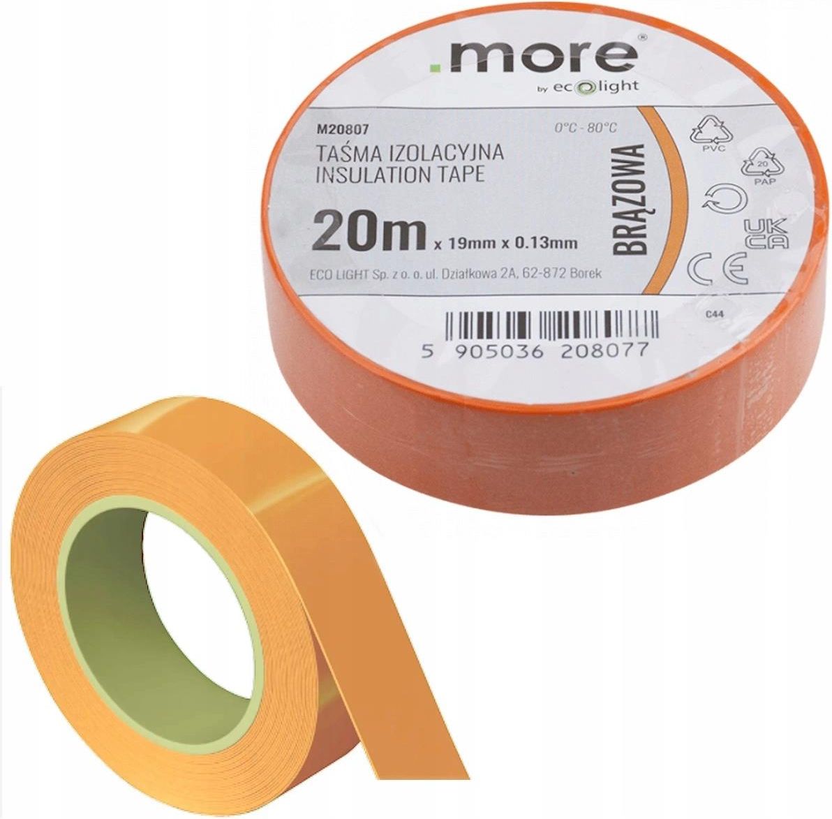 Ecolight Taśma Izolacyjna 19mm x 0,13mm Brązowa 20m Karczew