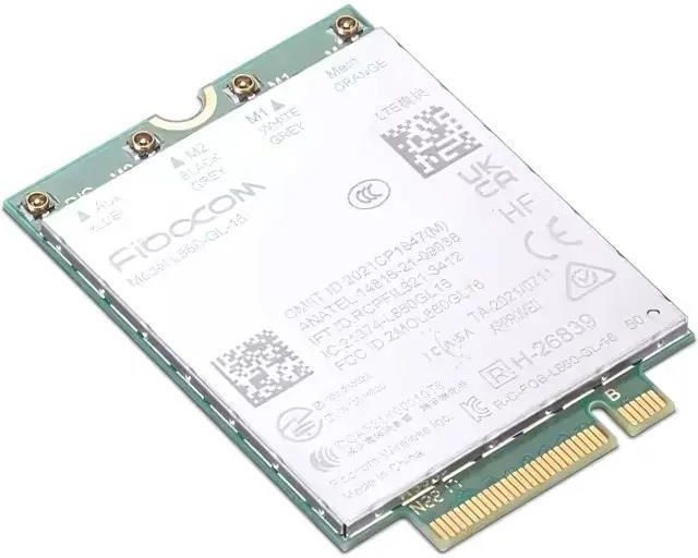 Moduł komunikacji bezprzewodowej ThinkPad Fibocom L860-GL-16 XMM7560 CAT16 4G PCIE M.2 3042 to moduł z technologią różnorodności odbioru. Zapewnia łączność danych i sieć z interfejsem PCIe Gen2 M.2. Dzięki prędkości pobierania do 1 Gbps i prędkości wysyłania do 150 Mbps, moduł 4G LTE CAT16 WWAN zwiększa niezawodność i dostępność sieci w Twoim ThinkPadzie, oferując doskonałe rozwiązanie komórkowe dla podróżujących, aby utrzymać mobilność podczas korzystania z urządzeń PC.