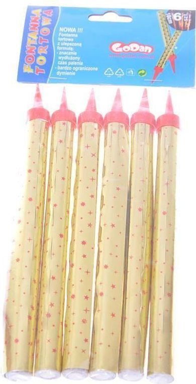 Fontanny Party – Magiczny Akcent na Twojej Imprezie! Dodaj blasku i radości swoim uroczystościom dzięki naszym fontannom party! Każda fontanna o wysokości 18 cm w kolorze złotym z czerwonymi kropkami zapewni niezapomniane chwile i wspaniałą atmosferę na każdym wydarzeniu. Idealne na urodziny, sylwestra, wesele czy inne przyjęcia! Cechy produktu W zestawie znajdują się 6 sztuk fontann, co sprawia, że są idealne do dzielenia się radością z bliskimi. Wysokość każdej fontanny wynosi 18 cm, a średnica to 11 mm, co czyni je doskonałym wyborem do każdego rodzaju dekoracji. Czas palenia wynosi około 60 sekund, co pozwala na zachwycające efekty wizualne w krótkim czasie. Plastikowa końcówka zabezpieczająca zapewnia bezpieczne użytkowanie, bez obaw o niepożądane uszkodzenia. Fontanny sypiące złoto-srebrnymi iskierkami tworzą niesamowity efekt, który zachwyci Twoich gości! Idealne na każdą okazję Fontanny Party to idealny sposób na wzbogacenie każdej imprezy. Użyj ich na urodzinach, weselach, czy sylwestrze, aby dodać niezwykłej magii do swojego przyjęcia. Efektowne iskrzenie i piękne kolory z pewnością przyciągną uwagę i wprowadzą wszystkich w radosny nastrój. Dodatkowe informacje Kolor: złoty Wysokość: 18 cm Średnica: 11 mm Czas palenia: około 60 sekund Niech te wyjątkowe fontanny staną się nieodłącznym elementem Twojej kolejnej imprezy, dodając niezapomnianych chwil i wspaniałych wspomnień! Sprawdź także nasze inne produkty Balony, serpentyny oraz dekoracje na imprezy Świeczki i inne akcesoria do celebracji