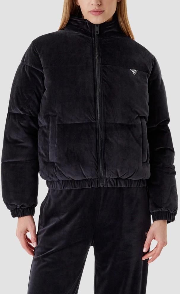 GUESS Сzarna zamszowa kurtka damska Couture Puffer, Rozmiar S Karczew