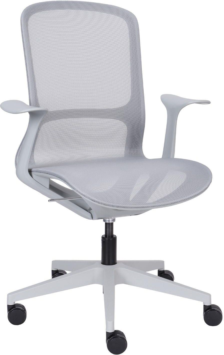 Krzesło biurowe Rainbow w kolorze szarym to połączenie nowoczesnego designu, wygody i funkcjonalności.Dzięki swojej lekkiej konstrukcji i uniwersalnemu wyglądowi sprawdzi się zarówno w domowym gabinecie i w pokoju młodzieżowym.To ekonomiczne krzesło obrotowe zostało zaprojektowane z myślą o komforcie podczas pracy lub nauki przy biurku.Siedzisko oraz wysokie oparcie wykonano z trwałej, elastycznej siatki w uniwersalnym szarym kolorze.Materiał ten dopasowuje się do pleców użytkownika, zapewniając prawidłowe podparcie kręgosłupa oraz doskonałą cyrkulację powietrza – idealne rozwiązanie na cieplejsze dni.Stałe podłokietniki z wytrzymałego tworzywa wspierają ramiona i barki, zmniejszając napięcie mięśni podczas siedzenia.Po zwolnieniu blokady możemy "bujać się" w fotelu lub ponownie zablokować go w standardowej pozycji do pracy.Krzesło wyposażone w podnośnik pneumatyczny, dzięki czemu można dopasować jego wysokość do swojego wzrostu i potrzeb.Stabilna, pięcioramienna podstawa jezdna w kolorze dopasowanym do siedziska i oparcia nadaje krzesłu nowoczesny, spójny wygląd.Standardowe kółka twarde są przeznaczone do powierzchni dywanowych.Dlaczego warto wybrać krzesło Rainbow szare?- Oparcie i siedzisko z przewiewnej siatki w modnych kolorach.- Możliwość bujania się.- Stałe podłokietniki – wygodne wsparcie dla ramion.- Lekka forma – idealne jako krzesło do biurka młodzieżowe.- Stabilna podstawa w kolorze krzesła.- Kółka twarde do dywanów w standardzie.Wymiary: Szerokość siedziska: 480 mm x Głębokość: 500 mm*Wymiar nominalny w zależności od konfiguracji produktu może się nieznacznie różnić. Tolerancja wymiarów pomiędzy produktami z tej samej konfiguracji wynosi +/- 5 mm.Fotel objęty jest 2 letnim programem gwarancyjnym producenta, świadczonym w systemie od drzwi do drzwi dla Państwa pełnego komfortu.Produkt dostarczymy do Państwa BEZPŁATNIE pod wskazany adres na terenie całego kraju.Co WAŻNE: zgodnie z prawem i naszymregulaminemmają Państwo pełne prawo do zwrotu nieużywanych towarów, jeśli nie spełnią one Państwa oczekiwań.