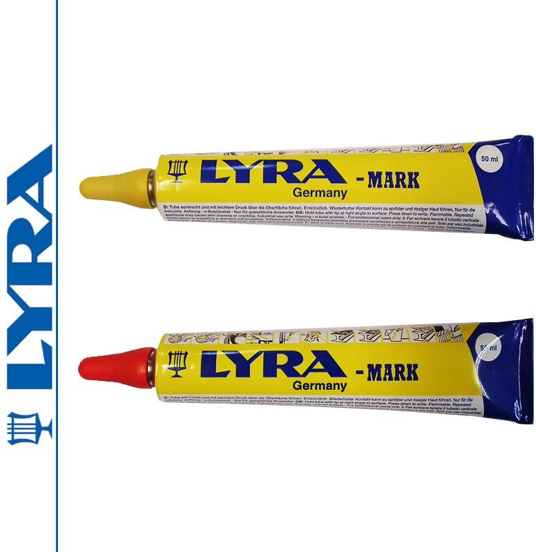 Farba w tubie LYRA MARK Opis przedmiotu: Doskonale nadaje się do niemal wszystkich bardzo trudnych w znakowaniu podłożach takich jak: tłusty lub zardzewiały metal. Cechy: Wytrzymuje ekstremalne temperatury, nawet do 1000 stopni. Zawartość 50 ml Wodoodporna Kolory: Czerwony Niebieski Żółty Biały Zakres dostawy: Farba w tubie do oznaczeń LYRA Dokument sprzedaży (Paragon / Faktura VAT)