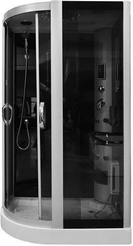 KABINA PRYSZNICOWA Z HYDROMASAŻEM I FUNKCJĄ SAUNY PAROWEJ - ASYMETRYCZNA 120X85X225CM MODEL: MO-09914 CZARNA + SAUNA SPECYFIKACJA PRODUKTU Wymiary zewnętrzne: 120 x 85 x 225 cm Typ brodzika: niski brodzik Wysokość brodzika (zewnątrz): 15 cm Grubość szkła hartowanego: 5 mm Materiał wykonania: Brodzika: Akryl (ABS) Ramy: aluminium (srebrny) Ścian tylnych: szyby (czarne) Wyposażenie: Dysze do hydromasażu (2″): 4 szt. Dysze do akupresury (1″): 4 szt. Bateria prysznicowa: tak (zawór mieszający, rozdzielacz) Pokrętła pokryte chromem: tak Wielofunkcyjny prysznic ręczny: 1 szt. Deszczownica: 1 szt. Wentylator wyciągowy: 1 szt. Półka na kosmetyki: 1 szt. Lustro: 1 szt. Dozownik na mydło: 2 szt. Składane siedzisko z oparciem: 1 szt. Masażer do stóp: 1 szt. Światła LED: 12 szt. (1 kolor – biały) Światła LED (zamontowane w dachu): 24 szt. (1 kolor – biały) Panel sterowania: tak Radio: 1 szt. Głośnik: 1 szt. Jonizator: 1 szt. Generator pary: 1 szt. Wylot pary: 1 szt. Funkcja sauny parowej: tak Dno brodzika antypoślizgowe Typ kabiny: asymetryczna (wersja lewa) Typ drzwi: podwójne przesuwne Węże przyłączeniowe do wody: tak (1/2″) Elementy montażowe: tak