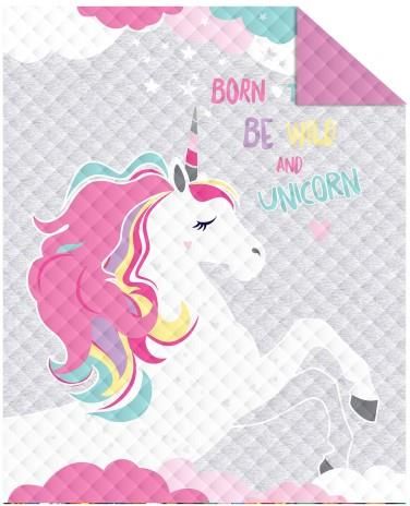 Narzuta młodzieżowa 170x210 jednorożec unicorn Bedspread Narzuta młodzieżowa Holland 170x210 dekoracyjna na łóżko pikowana, to idealny wybór do pokoju dziecka i nastolatka. Narzuta pomoże utrzymać porządek, a piękne wzory z modnymi motywami dopełnią i dodadzą charakteru każdemu wnętrzu. Wykonana z matowego materiału przypominającego bawełnę, składającego się ze 100% poliestru. Posiada estetyczne pikowanie tworzone metodą zgrzewania hot press, które jest zdecydowanie solidniejsze od tradycyjnego zszywania. Jest gładka i przyjemna w dotyku, a do tego nie jest śliska. Dwustronna narzuta, dodatkowo urozmaici wygląd sypialni Twojej pociechy. Idealny pomysł na prezent. Rozmiar: 170x210cm Tolerancja rozmiaru: +/-3 % Materiał: 100% poliester Wykończenie: lamówka Oferta dotyczy samej narzuty bez poszewek na poduszki. Przepis konserwacji: prać ręcznie w temperaturze do 40°C, nie czyścić chemicznie, nie prasować, nie chlorować, suszyć w stanie rozwieszonym. Indeks katalogowy: 2338583 Kod kreskowy: 5901685695855