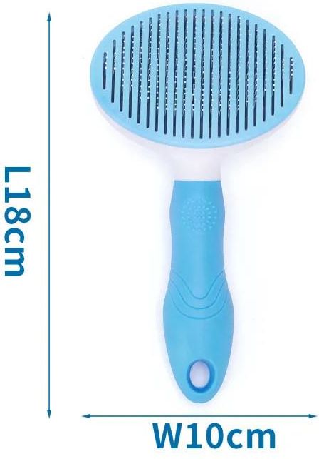 NOBLEZA SAMOCZYSZCZĄCA SZCZOTKA DO SIERŚCI OKRĄGŁA Idealna do codziennej pielęgnacji wszystkich rodzajów sierści; od krótkiej, długiej, ciężkiej po zmierzwioną. Szczotka ta jest często używana do rozplątywania kołtunów i usuwania martwych włosów. Szczotka slicker to szczotka z wieloma zakrzywionymi metalowymi haczykami. Na niej znajdują się gumowe kulki, które zapewniają czworonożnemu przyjacielowi masaż bez uszkadzania skóry. Włosy można usunąć ze szczotki po naciśnięciu przycisku, dzięki czemu jest ona łatwa i szybka w użyciu. Ponadto, szczotka ta posiada ergonomiczny uchwyt. Rączka jest szersza, dzięki czemu dobrze leży w dłoni i jest łatwa w obsłudze. Wymiary: Szczotka: Szerokość 10 cm × Długość 18 cm, Główka szczotki; Szerokość 10 cm × Długość 7 cm, Rączka; Szerokość 3,5 cm × Długość 11 cm