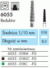 Legenda: Uziarnienie wierteł diamentowych: M bez pierścienia średni 107-126 µm ISO 524 SC Pierścień czarny wstępnie zgrubny 181 µm ISO 544 C Pierścień zielony zgrubny 151 µm ISO 534 F Pierścień czerwony drobny 40 µm ISO 514 SF Pierścień żółty bardzo drobny 20 µm ISO 504 UF Pierścień biały ultradrobny 15 µm ISO 494 FG – turbina FGL i FGXL – turbina przedłużona FGM – mikroturbina RA – kątnica RAL – przedłużona kątnica HP – prostnica