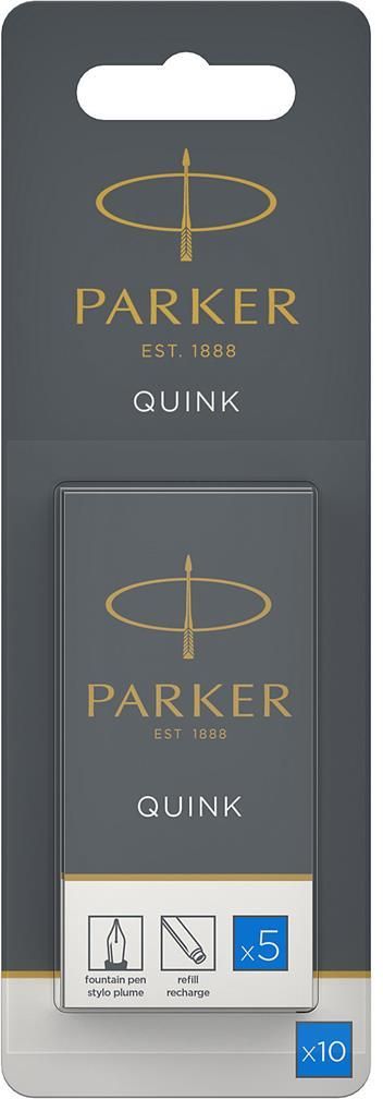Naboje atramentowe Parker do piór wiecznych | długie naboje | niebieski atrament QUINK | 10 sztuk (opakowanie typu blister)Informacje o tym artykulePARKER - ekskluzywne naboje atramentowe do piór wiecznychPraktyczne długie naboje do łatwego napełniania bez wyciekówWysoce pigmentowy atrament …