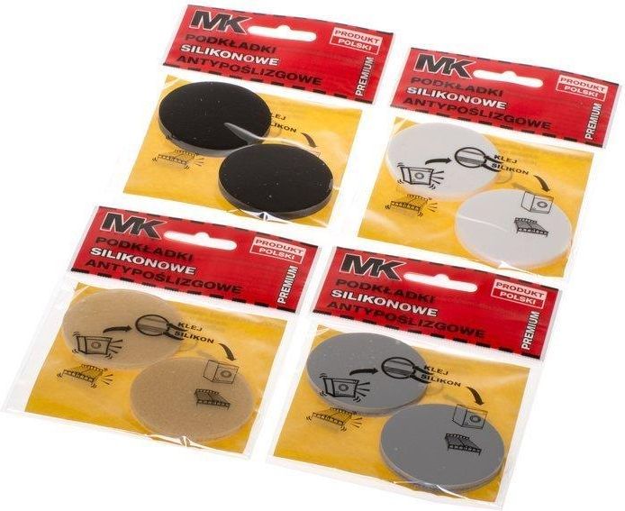 Podkładki silikonowe antypoślizgowe 50mm 2 sztuki; kod produktu: MK19 Podkładki silikonowe antypoślizgowe 50mm 2 sztuki Opakowanieantypoślizgowych podkładek silikonowych, które pozwolą zabezpieczyć pralkę, lodówkę, łóżko, szafkę lub dowolne urządzenie czy meble. Wyposażone zostały w warstwę klejącą, dzięki czemu są bardzo łatwe w montażu. Wymiar:50 mm Ilość:2 sztuki Kolor:do wyboru: szare, transparentno-kremowe, brązowe lub czarne. Prosimy o podanie informacji, który kolor został wybrany.