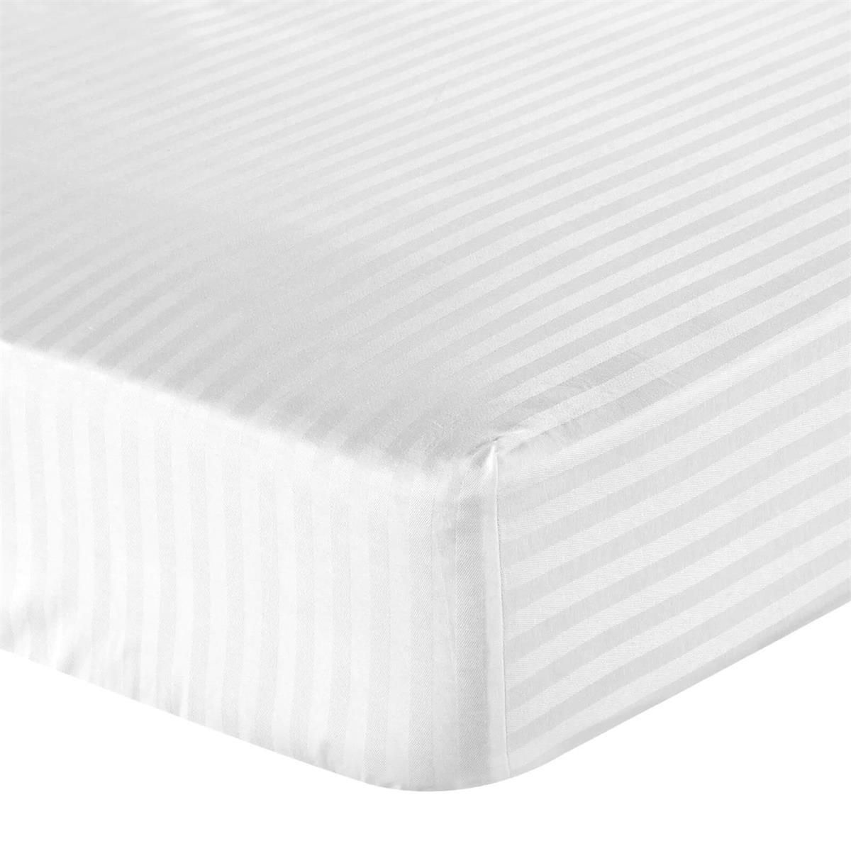 Prześcieradło z żakardowego adamaszku w pasy białe 100X200+30CM Karczew