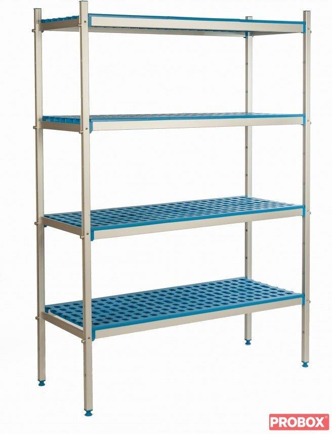 Regał, 4 półkowy, 1370 x 400 x 1750 mm wykonany najwyższej jakości aluminium anodowanego z półkami z polipropylenu przeznaczonymi do kontaktu z żywnością. Alushelf jest wszechstronny – spełnia najwyższe wymogi sanitarne. Idealnie sprawdzi się w komorach chłodniczych i mroźniczych, zapleczach …
