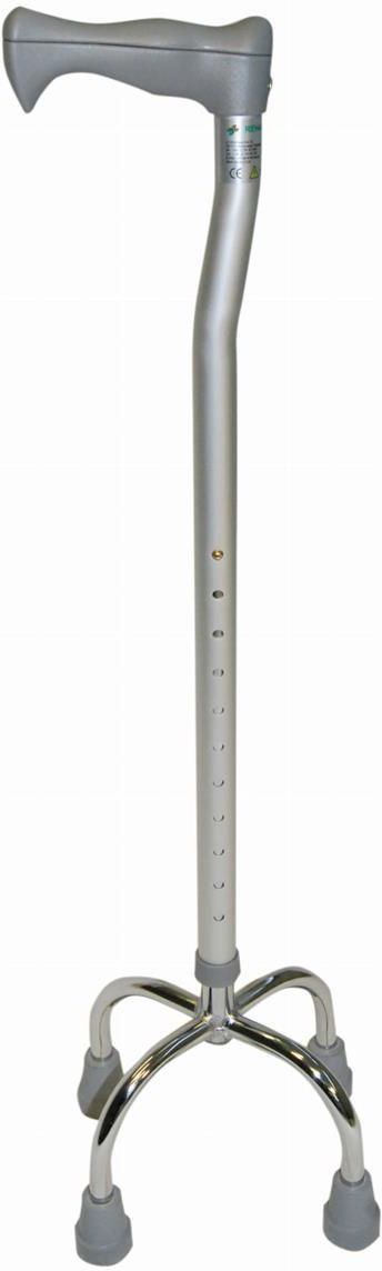 Czwórnóg To idealne rozwiązanie dla osób szukających dodatkowego wsparcia podczas chodzenia. Dzięki czterem punktom podparcia zapewnia lepszą stabilizację, a kształt podstawy w przeciwieństwie do trójnogu pozwala na podpieranie się przy wchodzeniu na schody. górna część wykonana z eleganckiego, anodyzowanego aluminium dla zwiększenia wytrzymałości dolna część wykonana z wysokogatunkowej stali wygodną, profilowaną rękojeść wykonano z wytrzymałego tworzywa sztucznego posiada 4 stopki dla większej stabilizacji na wszystkich stopkach posiada antypoślizgowe, gumowe nasadki dla ułatwienia regulacji wysokości zastosowano przyciski typu „C-clip” Zastosowanie medyczne: Czwórnóg przeznaczony jest do poruszania się, asekuracji podczas chodzenia, do podparcia, utrzymania równowagi i przenoszenia ciężaru ciała w przypadkach schorzeń urazowo – ortopedycznych kończyn dolnych. Posiada cztery punkty podparcia, co zapewnia użytkownikowi większą stabilność podczas chodzenia. Przeznaczony jest dla pacjentów mających problemy z zachowaniem równowagi, po urazach, podczas leczenia zmian zwyrodnieniowych, po zabiegach, gdy wskazane jest odciążenie jednej kończyn kod produktu: RF-400 producent: Rehafund Dane techniczne maksymalne bezpieczne obciążenie 127 kg regulacja wysokości 77 - 103 cm waga 1,15 kg