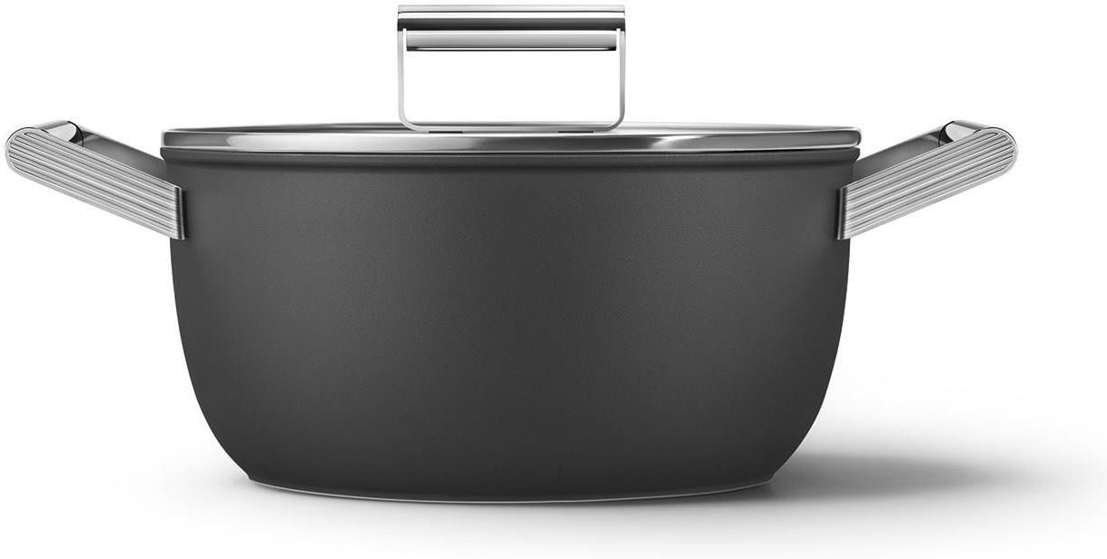Garnek 24 cm SMEG CSF2412BLM Czarny 50's Style Wykonany we Włoszech z dbałością o szczegóły i z wysokiej jakości materiałów, garnek posiada powłokę ceramiczną wolną od PFAS i jest wyposażony w szklaną pokrywkę. Wszechstronny i praktyczny, idealnie nadaje się do przygotowywania wszelkich potraw na …