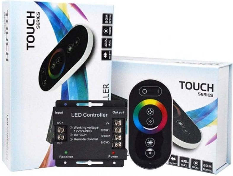 Kontroler dotykowy RF posiada zaawansowaną jednostkę kontrolną, służy do sterowania różnymi taśmami lub lampami, których źródłem światła są diody LED. Na przykład, lampa, taśma led, kinkiet, żyrandol itp. ma wiele zalet, takich jak łatwe połączenie i prostota w użyciu. Zgodnie z rzeczywistą potrzebą urzytkownika, może przeprowadzić skokowe zmiany, płynne zmiany, stroboflash i inne.Dane techniczne: Wejście: DC12V-DC24V Wyjście: 3 kanały Maksymalny prąd obciążenia: 6A każdy kanał, całkowity: 18A Tryb łączenia: Wspólna anoda (czyli typowy- wspólny plus) Baterie w pilocie: 3x Bateria AAA (brak w zestawie) Typ pilota: Panel dotykowy Odległość zdalna: 20metr na otwartej przestrzeni Temperatura robocza: -20C – 60 C Rozmiar skrzynki sterującej: L83mm*W81mm*H32mm Wymiary pilota: L115mm*W56mm*H23mm Materiał produktu: Pudełko sterujące: metalowe, Pilot:ABS uwaga:tryb połączenia: wspólna anoda - czyli standard :), jak taśma jest na 12V to i zasilacz też ma mieć 12V!!!Towar nowy zapakowany w kartonik.Gwarancja 12 miesięcy.