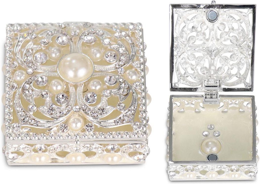 Ozdoba- PUZDERKO, kwadratowa szkatułka, wykonana z pozłacanego stopu cynku oraz żywicy epoksydowej ze zdobieniem perłowym.Przedstawiony produkt firmowany jest marką Summer P., chińską, cenioną w kraju i zagranicą, marką obecną na rynku już kilkunastu lat, a zajmującą się produkcją artykułów do dekoracji i ozdoby wnętrza(idealnych na upominki i prezenty), dekoracyjnej porcelany oraz ceramiki stołowej. Podstawowa specyfikacja: wymiary = do około 5,5×5,5×3,2 cm materiał wykonania: stop cynku + żywica epoksydowa podstawowy kolor: pozłacany opakowanie: kartonowe kolekcja: Summer P.
