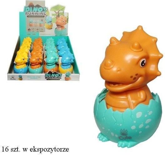 Kolorowy dinozaur w jajku. Wystarczy nacisnąć dinozaura i sam pomknie w przód. Zabawka sprawi dzieciom wiele frajdy. Produkt występuje w kilku wersjach kolorystycznych, wybierany losowo. Cena dotyczy jednej sztuki. Zabawka dla dzieci od 3 lat.