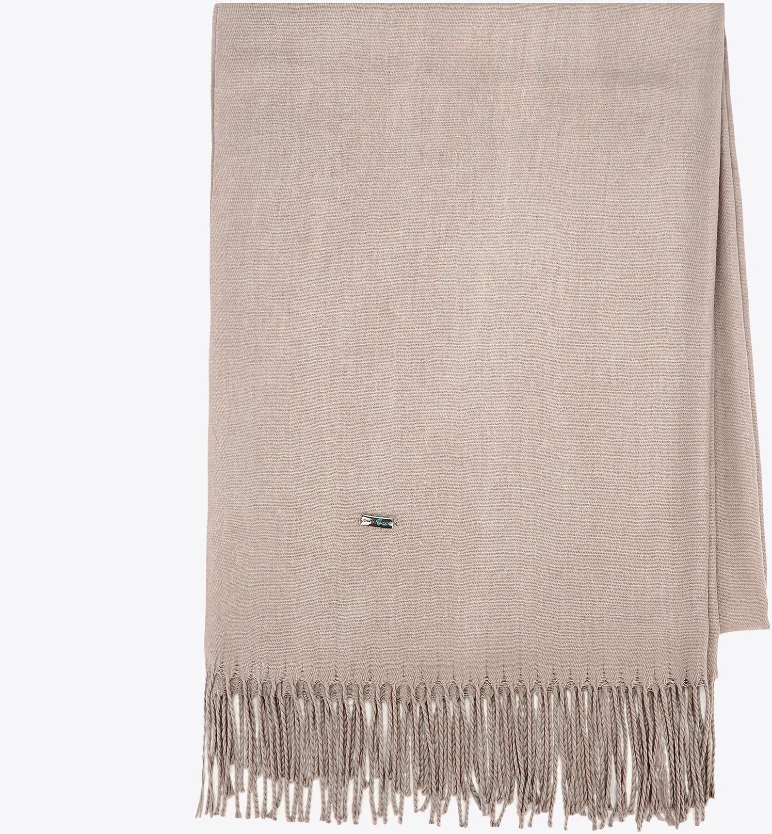 Szalik damski z frędzlami jednolity beżowy Karczew