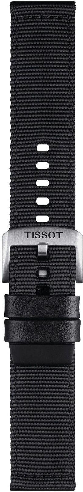 Tissot Textile 22 mm T852.046.769 to czarny pasek uszyty z wytrzymałego materiału. Wyposażono go w w