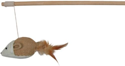 Najlepsza zabawka dla każdego kota: patyk z myszką. Dzięki wspólnej zabawie zacieśniasz więź ze swoim kotem. tkanina / juta / filc / płótno / plusz, drewno Z piórami Długość wędki 50 cm