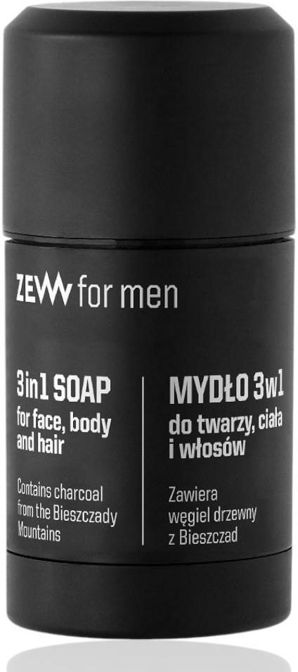 Zew For Men Mydło 3 W 1 Naturalne Mydło Do Twarzy Ciała I Włosów Z Węglem Drzewnym W Sztyfcie 85ml Karczew