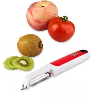 Zyliss - Obierak prosty ząbkowane ostrze Obieraczka posiada dwustronne ruchome ząbkowane ostrze idealne do obierania pomidorów oraz innych warzyw i owoców z miękką skórką, tj. róznego rodzaju śliwek, kiwi. Oczywiście obiera także marchew, ziemniaki, ogórki itd. Świetnie sprawdzi się także do …