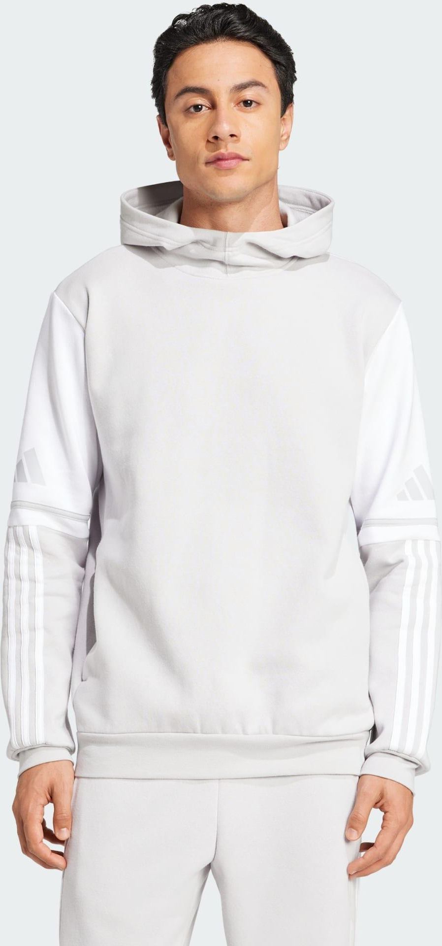 Bluza męska adidas będzie sprawdzonym wyborem dla miłośników piłki nożnej, którzy cenią komfort i sportowy styl poza boiskiem. Model zaprojektowany z myślą o amatorskich drużynach, świetnie sprawdzi się zarówno podczas odpoczynku na ławce rezerwowych, jak i w drodze na trening. Dominująca bawełna w naturalny sposób wspomaga proces wentylacji, a dodatek poliestrowych włókien przyczynia się do odprowadzenia nadmiaru wilgoci do zewnętrznych warstw. Miękkie wyściełanie pomoże w utrzymaniu odpowiedniej temperatury ciała w chłodne dni. Regularny krój swobodnie układa się na sylwetce, dlatego będziesz czuł się pewnie i wygodnie. Kaptur bez regulacji jest praktycznym dopełnieniem, które sprawdzi się podczas wietrznej pogody i lekkiej mżawki. O ładne ułożenie i stabilizację bluzy dbają elastyczne ściągacze przy mankietach i u dołu bluzy, które dodatkowo zapobiegają podwiewaniu chłodnego powietrza. Zapinane kieszenie z przodu pozwolą przechować podręczne drobiazgi. Gładki model z przyciągającymi uwagę elementami i paskami biegnącymi wzdłuż części rękawów oraz logo tworzy uniwersalny design, który sprawdzi się podczas aktywności i na co dzień. Technicznie dopracowana bluza adidas będzie Twoim wsparciem na co dzień. Materiał: 70% bawełna, 30% poliester pochodzący z recyklingu