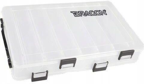 Dwustronne pudełko na przynęty spinningowe Wymiary: 28,5 x 19 x 5 cm, Waga: 360 g Kolor: Transparentny Niezwykle praktyczne pudełko na przynęty i akcesoria, wykonane z mocnego plastiku z wytrzymałymi zatrzaskami. Transparentne wykończenie pozwala na łatwą lokalizację drobiazgów. BARDZO DOBRY …
