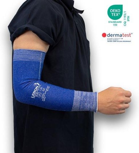 Zarękawek antyprzecięciowy Lebon Prosleeve/L, bezszwowy, wykonany z polietylenu, poliamidu oraz elastanu, zapewnia doskonałą ochronę przedramienia przed uszkodzeniem. Zarękawek jest wysoce odporny na ścieranie i rozdarcie, co zwiększa jego wytrzymałość i żywotność. Właściwości produktu: Ochrona przed przecięciem Bezszwowy Odporność na ścieranie i rozdarcie Długość: 400 mm Zastosowanie: Przemysł Automotive Przemysł budowlany Przemysł motoryzacyjny Przemył logistyczny Miejsca, w których istnieje duże ryzyko urazów mechanicznych Materiał: Polietylen/Poliamid/Elastan Dostępne rozmiary: N – 350 mm, L – 400 mm Opakowanie zbiorcze: 100 par w kartonie (10 par w opakowaniu) Normy i certyfikaty: EN 420 | EN 388 [3X4XC] | OEKO-TEX STANDARD 100