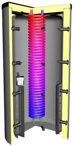Alpha Thermotec PSH 800 Pionowy zbiornik buforowy niemieckiej firmy Alpha Thermotec ze stali czarnej o pojemności 800 litrów. Jest to wymiennik z jedną karbowaną wężownicą ze stali nierdzewnej przeznaczoną do C.W.U. W porównaniu z konkurencyjnymi firmami, do zbiorników firmy Alpha Thermotec wężownice są wkładane do środka dopiero po zakończeniu procesu spawania zbiornika, dzięki czemu nie mają mniejszej odporności przez odpryski spawalnicze. Zbiorniki posiadają otwór rewizyjny, dzięki czemu można wyciągnąć wężownicę i odkamienić ją po kilku latach użytkowania. Model: PSH 800 Wymiary: Wysokość - 170 cm Średnica (z izolacją) - 99 cm Powierzchnia wężownicy - 8,0 m² Produkt objęty jest pięcioletnią gwarancją producenta. W galerii znajdą Państwo zdjęcia otworu rewizyjnego oraz wężownic nierdzewnych. Izolacja: Zbiornik posiada izolację Neodul firmy Greiner PURtec GmbH z pianki polistyrenowej, dzięki czemu montaż jest możliwy nawet przez jedną osobę. Parametry techniczne: