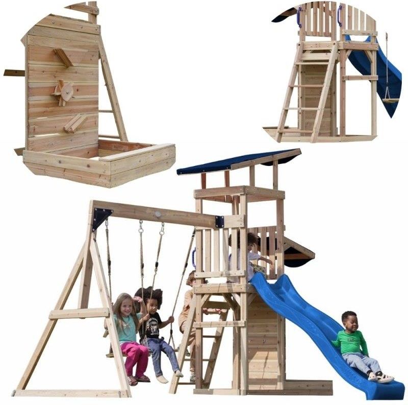 Axi Drewniany Duży Plac Zabaw Huśtawki Zjeżdżalnia Wieża + Piaskownica Karlino
