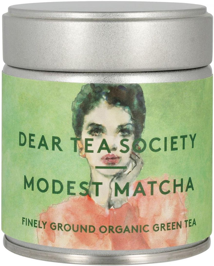 Dear Tea Society Modest Matcha, czyli drobno mielona japońska zielona herbata. Matcha może być serwowana na ciepło lub na zimno, z mlekiem lub bez. Jest nie tylko pyszna, lecz także zdrowa i pełna przeciwutleniaczy. Modest Matcha zachwyca smakiem pełnym umami, jest organiczna i zamknięta w eleganckiej puszce. Składniki: 40g drobno zmielonej organicznej zielonej herbaty z Japonii.