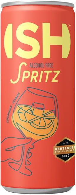 Bezalkoholowy koktajl Spritz ISH Spirits. Francuski korzeń goryczki i kora kwasii dodają goryczki, podczas gdy włoskie mandarynki, pomarańcza i cytryna zapewniają kwaskowatą świeżość. To wszystko połączono ze specjalnym destylatem wykorzystującym łupiny nasion chili, aby zapewnić delikatnie rozgrzewający charakter. ISH Spritz najlepiej pić prosto ze schłodzonej puszki lub podać w kieliszku z plasterkiem świeżej pomarańczy. Chcesz dodać procentów? Po prostu dodaj odrobinę prosecco - otrzymasz w ten sposób koktajl o znacznie niższej zawartości alkoholu w porównaniu do tradycyjnego Spritza. Ten bezalkoholowy Spritz miał szczęście zdobyć kilka międzynarodowych nagród za smak i innowacyjność. Najważniejsza z nich to nagroda Category Champion przyznana na Bartenders Brand Awards w Londynie, gdzie ISH Spritz wygrał jako najlepszy produkt w swojej klasie spośród wszystkich bezalkoholowych produktów. Produkt bezalkoholowy <0,5% vol., bez glutenu. Składniki: Woda, cukier, dwutlenek węgla, naturalny aromat (zawiera goryczkę, pomarańczę, cytrynę, mandarynkę, cynamon, kwasię i ekstrakt z chili), regulator kwasowości: kwas cytrynowy, konserwant: sorbinian potasu, barwnik: kwas karminowy, aromat: chinina. Informacja odżywcza na 100 ml: Energia: 128 kJ / 30 kcal Tłuszcz: 0g w tym kwasy tłuszczowe nasycone: 0g Węglowodany: 7g w tym cukry: 7g Białko: 0g Sól: 0g