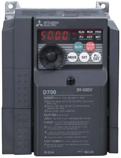 Falownik serii FR-D700 z zasilaniem trójfazowym wyposażony w panel sterowania z elektronicznym potencjometrem moc silnika - 3,7 kW zasilanie - 3x400V AC prąd znamionowy - 8,0 A interfejs - RS485 ( ModbusRTU ) czestotliwość wyjściowa - 0,2....400 Hz stopień ochrony - IP 20 Instrukcja falowników …