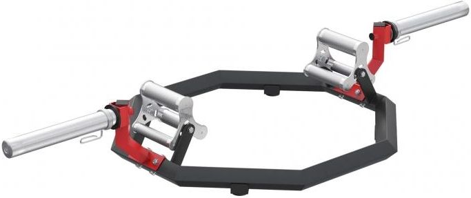 Produkt dla profesjonalistów Dzięki swojej budowie gryf jest doskonały do trenowania martwego ciągu. Jego maksymalny udźwig to 340 kg co oznacza, że jest to uchwyt idealny dla profesjonalnych sportowców.Ponadto średnica gryfu jest dostosowana do obciążeń olimpijskich, o średnicy 51 mm. Długość części na obciążenia to 32 cm Trzy różne średnice rękojeści - dzięki temu nie musisz obawiać się, że gryf wyślizgnie Ci się z dłoni. Multi Grip Trap Bar czarno-czerwony 50 mm zaciskowy 3 rodzaje chwytów Na ciężary w formacie olimpijskim: 50mm Długość miejsca na obciążenia: 32 cm Ryflowana część chwytna Dostępne 3 rodzaje chwytu: 25 mm, 28 mm, 50 mm Ilość zacisków sprężynowych: 2 Waga 20 kg Udżwig do 340 kg Długość 171 cm 4 stabilne nóżki o wysokości: 1,5 cm Najważniejsze informacje: Skuteczne ćwiczenia, które łączą martwy ciąg i przysiad, a jednocześnie chronią stawy. Dzięki temu, że ręce są w neutralnym położeniu, łatwiej skoncentrować się na poprawnym wykonaniu ćwiczeń. Często możesz też podnieść trochę więcej ciężaru i lepiej pracować nogami niż przy zwykłym martwym ciągu. Prosta technika. Martwy ciąg z użyciem sztangi trap jest często łatwiejszy do nauczenia, zwłaszcza dla początkujących, którzy jeszcze nie mieli styczności z takim treningiem. Przy zwykłym martwym ciągu często grozi przeciążenie kręgosłupa. Sztanga trap pomaga temu zapobiec, bo dzięki jej specjalnemu kształtowi można trenować w bardziej wyprostowanej pozycji. Różne grubości uchwytów sprawiają, że siła chwytu jest bardziej wymagana niż przy klasycznych sztangach.