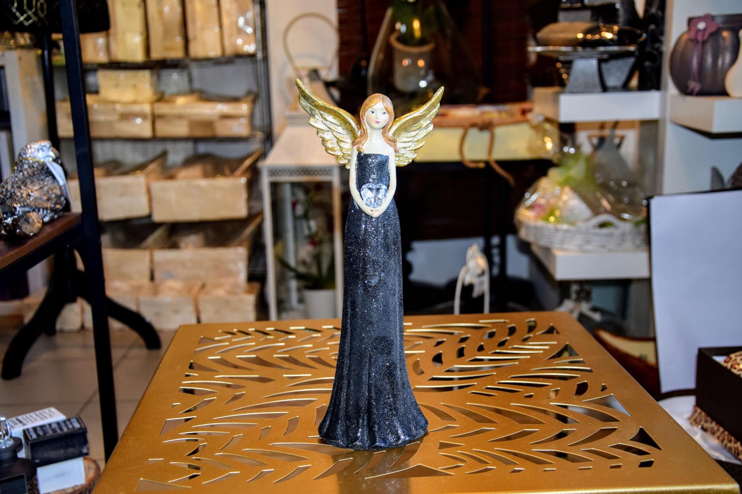 ANIOŁ CERAMICZNY CZARNY Z SERCEM 29CM Kartuzy