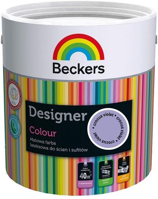 BECKERS DESIGNER COLOUR – wysokiej jakości, wodorozcieńczalna farba lateksowa. Zapewnia piękne, matowe wykończenie Tworzy powłokę odporną na mycie wodą z dodatkiem detergentu Wyróżnia się dobrym kryciem i trwałością koloru Nie wydziela nieprzyjemnego zapachu podczas nanoszenia i schnięcia Farbę …