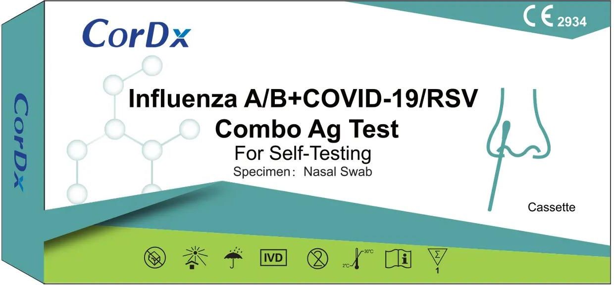 Produkt CorDx 4w1 Grypa A/B + COVID-19/RSV Combo Ag, test antygenowy na obecność 4 wirusów, 1 sztuka do kupienia w Gemini. CorDx Influenza A/B + COVID-19/RSV Combo Ag to test immunochromatograficzny do ...