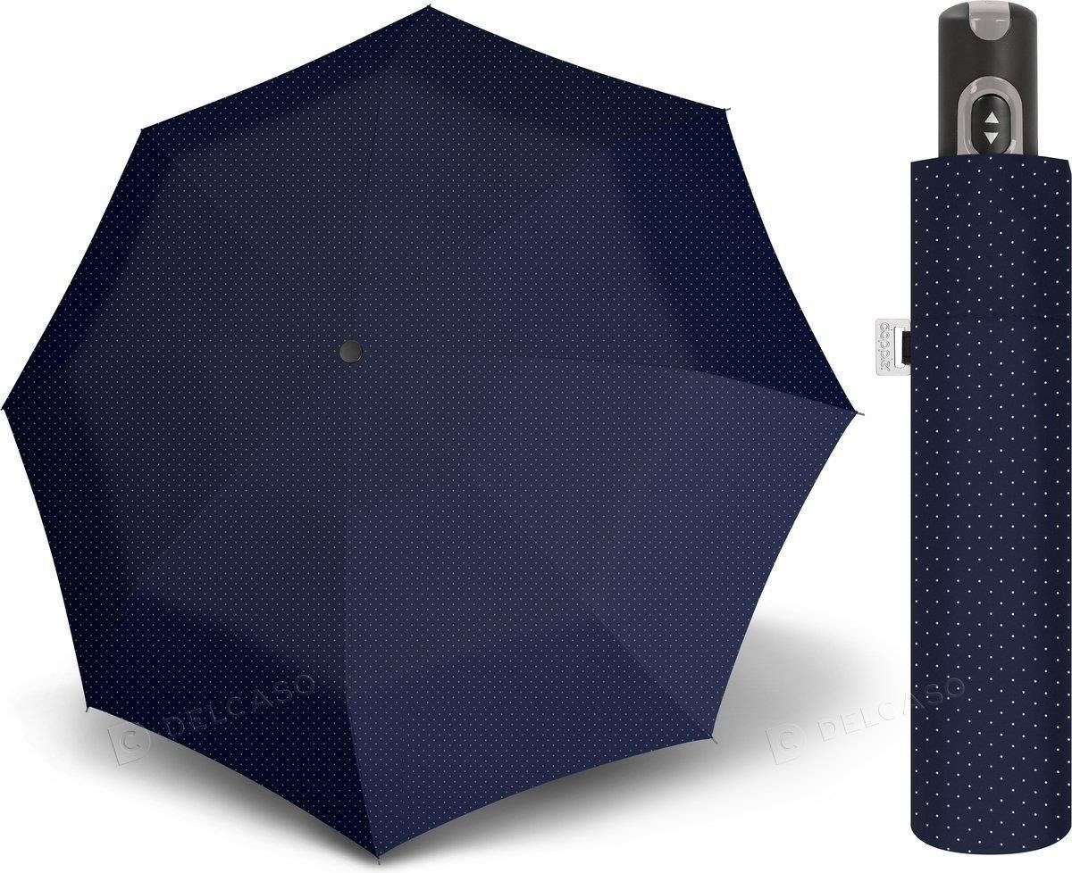 Elegancki i wytrzymały parasol damski Automatycznie rozkładany i składany, Marki DOPPLER Carbonsteel Magic Chic Nr. 744865DT02 materiał: poliester light pongee kolor: navy - granat średnica czaszy: ok. 100 cm długość parasola po złożeniu: 29 cm testowany w tunelu aerodynamicznym do prędkości wiatru …