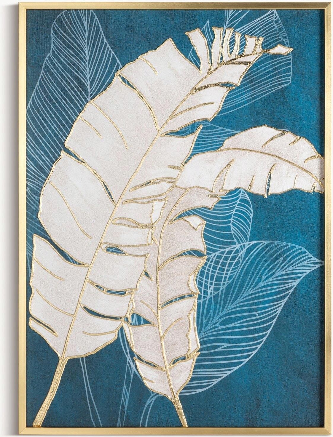 Nowoczesny obraz dekoracyjny w formacie 50 × 70 cm, głębokość oprawy to około 3 cm. Motyw egzotycznych liści – połączenie turkusu, złota i beżu – przyciąga wzrok i wprowadza elegancką nutę tropikalnego stylu. Wykonanie na trwałym płótnie, oprawa z MDF-u/plastiku, gotowy do natychmiastowego montażu. …