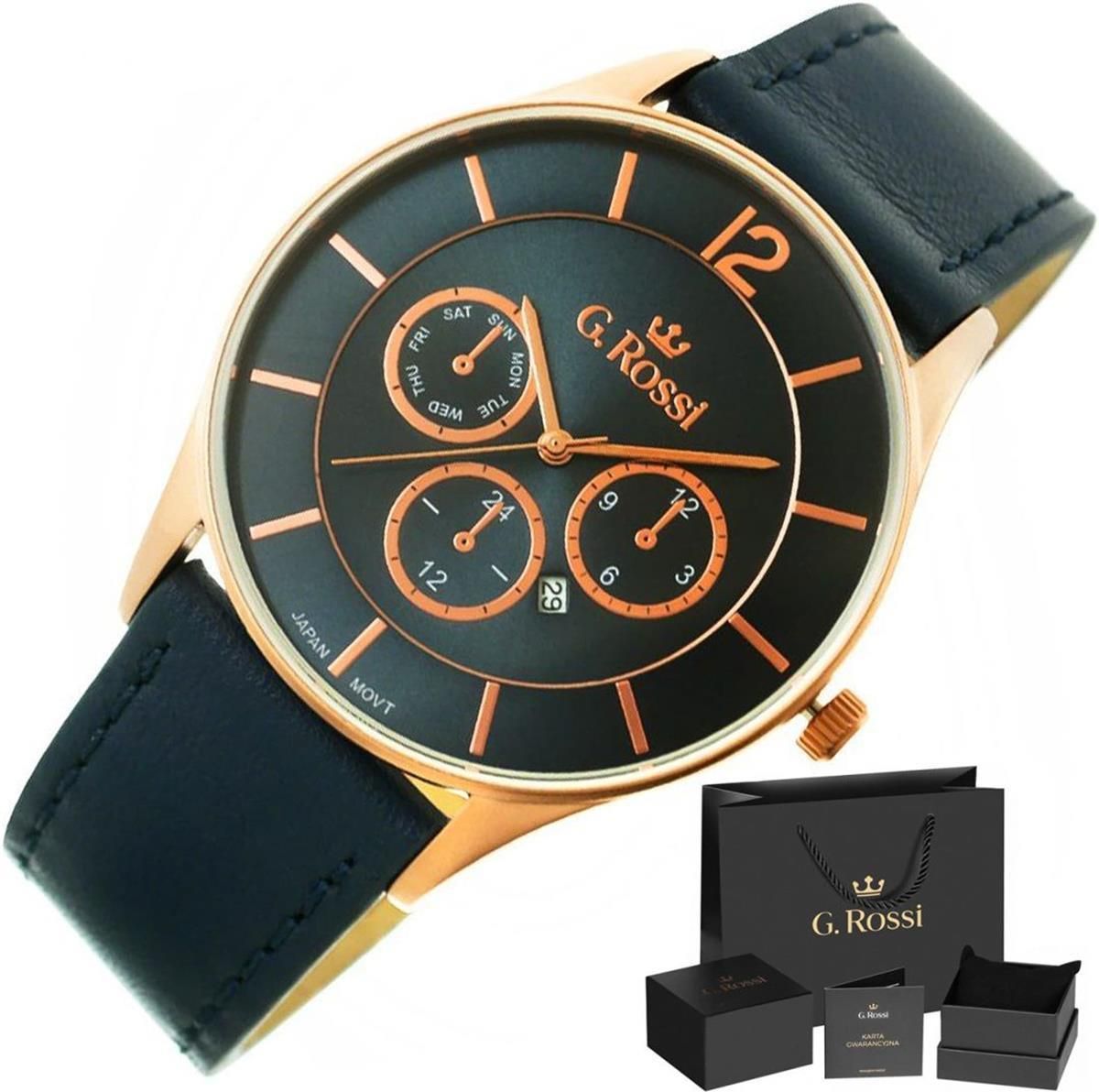 Gino Rossi Klester 7028A-6F3 Zegarki są nie tylko praktycznym narzędziem do odmierzania czasu, ale także wyrazem osobistego stylu i elegancji. Dzięki różnorodności wzorów, kolorów i funkcji, mogą stanowić doskonałe uzupełnienie garderoby. Zegarek Gino Rossi Klester 7028A-6F3 to propozycja dla mężczyzn ceniących sobie klasyczny styl i niezawodność. W tym opisie przedstawimy szczegółowe informacje na temat tego modelu, w tym jego typ, mechanizm, materiały, wymiary oraz dodatkowe funkcje. Typ zegarka i mechanizm Gino Rossi Klester 7028A-6F3 to analogowy zegarek męski, który charakteryzuje się klasycznym wyglądem i prostotą odczytu czasu. Mechanizm tego modelu jest kwarcowy, co oznacza, że działa na baterię i gwarantuje precyzyjność oraz niezawodność. Mechanizm został wyprodukowany przez Miyota Citizen, co świadczy o jego wysokiej jakości i japońskiej precyzji. Materiał koperty i szkiełko Koperta zegarka jest wykonana z stali nierdzewnej, co zapewnia trwałość i odporność na korozję. Dodatkowo, materiał ten nadaje zegarkowi elegancki wygląd. Szkiełko zastosowane w tym modelu to mineralne, które charakteryzuje się dobrą odpornością na zarysowania i wysoką przejrzystością, co zwiększa czytelność tarczy. Pasek i wymiary Zegarek jest wyposażony w pasek wykonany z naturalnej skóry, co zapewnia komfort noszenia oraz elegancki wygląd. Pasek ma szerokość 20 mm i jest w kolorze granatowym, co doskonale komponuje się z niebieską tarczą zegarka. Szerokość koperty wynosi 44 mm, co sprawia, że zegarek prezentuje się okazale na nadgarstku. Długość paska wynosi 135 mm dla części z dziurkami oraz 200 mm dla bransolety. Wodoszczelność i funkcje dodatkowe Zegarek Gino Rossi Klester 7028A-6F3 posiada wodoszczelność na poziomie 30m, co oznacza, że jest odporny na przypadkowe zachlapania oraz krótkotrwałe zanurzenie w wodzie. Dodatkowo zegarek wyposażony jest w datownik wskazujący dzień miesiąca oraz antyalergiczną powłokę IPB o zwiększonej trwałości. Model ten nie zawiera niklu, dzięki czemu jest bezpieczny dla osób z alergią na ten pierwiastek. Styl i design Zegarek Gino Rossi Klester 7028A-6F3 charakteryzuje się klasycznym stylem, który będzie odpowiedni zarówno na codzienne okazje, jak i bardziej formalne wydarzenia. Niebieska tarcza z logo Gino Rossi oraz złota koperta nadają mu elegancji i wyrafinowania. Dzięki okrągłemu kształtowi koperty oraz granatowemu paskowi zegarek prezentuje się bardzo stylowo i nowocześnie. Cechy kluczowe Zegarek posiada również dodatkowe cechy kluczowe: wysoka trwałość dzięki stalowej kopercie, wygoda noszenia dzięki skórzanemu paskowi, wysoka jakość mechanizmu kwarcowego Miyota Citizen, odporność na zarysowania dzięki mineralnemu szkiełku, bezpieczny dla alergików dzięki brakowi niklu. Podsumowanie Zegarek Gino Rossi Klester 7028A-6F3 to doskonały wybór dla mężczyzn poszukujących klasycznego i eleganckiego dodatku do swojej kolekcji akcesoriów. Jego wysokiej jakości mechanizm kwarcowy zapewnia precyzję działania, a materiały takie jak stal nierdzewna i naturalna skóra gwarantują trwałość oraz komfort noszenia. Dodatkowe funkcje takie jak datownik oraz antyalergiczna powłoka IPB sprawiają, że zegarek ten jest zarówno praktyczny, jak i bezpieczny dla użytkowników. Warto rozważyć zakup tego modelu ze względu na jego stylowy design oraz niezawodność.