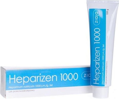 HEPARIZEN to lek wspomagający leczenie schorzeń naczyniowych oraz pourazowych, przeznaczony do stosowania miejscowego na skórę. Jego formuła opiera się na heparynie sodowej, znanej ze swoich właściwości przeciwzakrzepowych. Żel jest skutecznym środkiem w terapii takich dolegliwości jak:- Zakrzepowe zapalenie żył powierzchniowych- Stany zapalne żył kończyn dolnych- Żylaki kończyn dolnych- Stany pourazowe, takie jak krwiaki, stłuczenia, obrzękiDodatkowo, Heparizen 1000 może pomóc w zapobieganiu i leczeniu przerosłych blizn i bliznowców, które powstają po wcześniejszych urazach. Dzięki unikalnej formule i specjalistycznym składnikom, Heparizen 1000 zapewnia wszechstronną pomoc w łagodzeniu dolegliwości naczyniowych i pourazowych, przynosząc ulgę oraz wspierając proces gojenia skórySkładSubstancją czynną leku jest heparyna sodowa.Jeden gram żelu zawiera 1000 j.m. heparyny sodowej. Pozostałe składniki to: karbomer, dietanoloamina, etanol 96\%, propylu parahydroksybenzoesan (E 216), metylu parahydroksybenzoesan (E 218), woda oczyszczona.StosowanieLek Heparizen 1000 należy stosować miejscowo na skórę. Zalecana dawka Żel nakładać na chorobowo zmienioną powierzchnię skóry i najbliższą okolicę 1 do 3 razy na dobę. W zależności od powierzchni objętej zmianami chorobowymi nanieść na skórę od 5 do 10 cm żelu i delikatnie, przez kilka minut, masować.DziałanieZastosowanie heparyny sodowej na skórę w postaci żelu przyspiesza absorpcję krwiaków i nacieków, działa hamująco na powierzchniowe procesy zapalne poprzez neutralizację enzymów, takich jak hialuronidaza i fosfataza. Jej działanie długotrwałe korzystnie oddziałuje na zmienione chorobowo tkanki, łagodząc ból i uczucie napięcia. Dodatkowo, dzięki swojemu hydrofilnemu charakterowi, poprawia metabolizm podskórnej tkanki łącznej, co skraca czas rekonwalescencji.WskazaniaHeparizen 1000 jest lekiem wspomagającym w leczeniu: - zakrzepowego zapalenia żył powierzchniowych,- stanów zapalnych żył kończyn dolnych,- żylaków kończyn dolnych,- stanów pourazowych: krwiaków, stłuczeń, obrzęków.Stosuje się go również w zapobieganiu i leczeniu przerosłych blizn i bliznowców.Przeciwwskazania Nadwrażliwość na substancję czynną – heparynę sodową lub na którąkolwiek substancję pomocniczą.Ze względu na obecność metylu parahydroksybenzoesanu (E 218) i propylu parahydroksybenzoesanu (E 216), nie należy stosować produktu u osób z alergią na parabeny (możliwe reakcje typu późnego).Uwagi To jest lek. Dla bezpieczeństwa stosuj go zgodnie z ulotką dołączoną do opakowania. Nie przekraczaj maksymalnej dawki leku. W przypadku wątpliwości skonsultuj się z lekarzem lub farmaceutą.