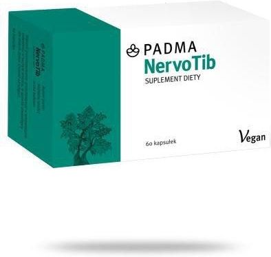 OpisPADMA NervoTib to suplement diety w postaci kapsułek, który w swoim składzie zawiera składniki wspomagają prawidłowe funkcjonowanie układu nerwowego. Preparat przeznaczony jest dla osób dorosłych. SkładnikiSubstancja glazurująca (hydroksypropylometyloceluloza), owoc kminku – otoczka zwyczajnego, owoc migdałecznika chebułowiec, substancja wypełniająca (celuloza mikrokrystaliczna), korzeń lukrecji, nasiona muszkatołowca korzennego, kwiat goździka, tlenek magnezu, kłącze omanu wielkiego, owoc pieprzu nepalskiego, nasiona kozieradki, żywica kadzidłowca, gumożywica z zapaliczki cuchnącej, substancja przeciwzbrylająca (dwutlenek krzemu).Składniki4 kapsułki*%RWSOwoc kminu zwyczajnego240 mg—-Owoc migdałecznika chebułowiec 160 mg—-Korzeń lukrecji160 mg—- Nasiona muszkatołowca korzennego 160 mg—- Kwiat goździka120 mg—- Tlenek magnezu120 mg—- Kłącze omanu wielkiego120 mg—- Owoc pieprzu nepalskiego 120 mg—- Nasiona kozieradki 112 mg—- Żywica kadzidłowca 80 mg—- Asafoetida – gumożywica z zapaliczki cuchnącej 48 mg—- Magnez72,4 mg19,3%*%RWS – Referencyjna Wartość Spożycia Wszystkie składniki roślinne są wysuszone i sproszkowane. Właściwości składnikówŻywica kadzidłowca – wspiera funkcje umysłowe. Owoc migdałecznika chebułowiec – pomaga walczyć ze stresem. Magnez – wspomaga utrzymanie prawidłowych funkcji psychologicznych oraz prawidłowe funkcjonowanie układu nerwowego. Zalecane dzienne spożycieDorośli: stosować 4 kapsułki dziennie, 2 kapsułki rano i 2 kapsułki wieczorem popijając je wodą.Ostrzeżenia dotyczące bezpieczeństwaNie należy przekraczać zalecanej dziennej porcji.Suplement diety nie może być stosowany jako substytut (zamiennik) zróżnicowanej diety. Suplement diety jest środkiem spożywczym, którego celem jest uzupełnienie normalnej diety. Dla utrzymania prawidłowego stanu zdrowia należy stosować zróżnicowaną dietę i prowadzić zdrowy tryb życia. Przechowywać w temperaturze pokojowej. Przechowywać w sposób niedostępny dla małych dzieci.Ostrzeżenia dotyczące bezpieczeństwa – dodatkoweNie stosować u kobiet w ciąży oraz karmiących piersią. Nie stosować u dzieci.
